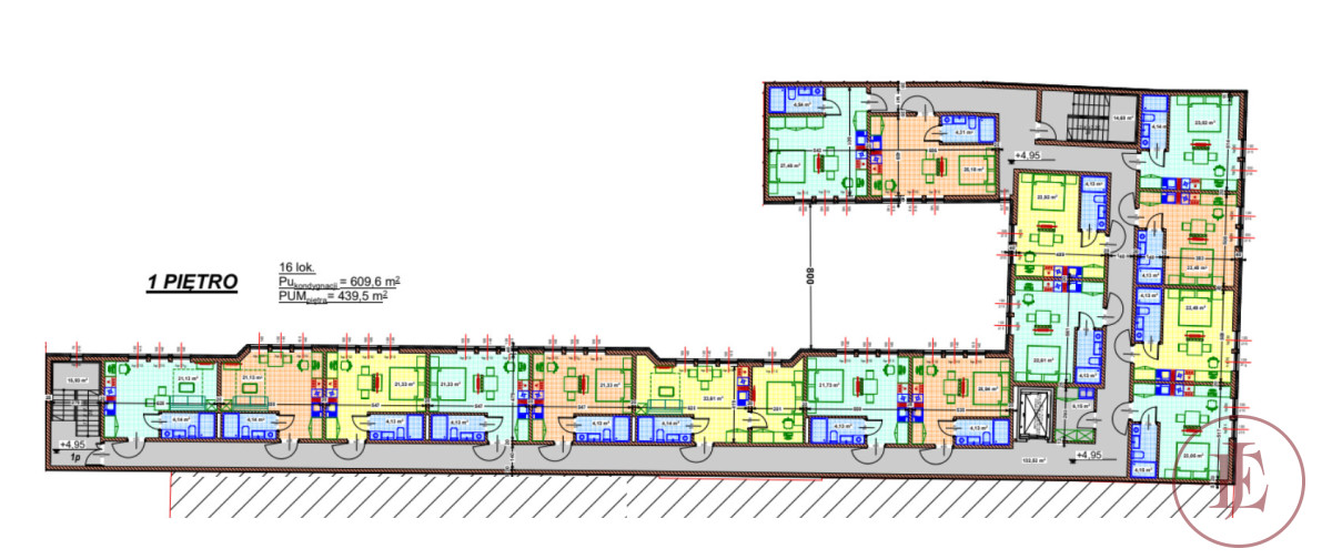 - Liczba mieszkań według gotowego projektu: 94 lokale na najem krótkoterminowy + 2 usługowe + 19 miejsc parkingowych-
