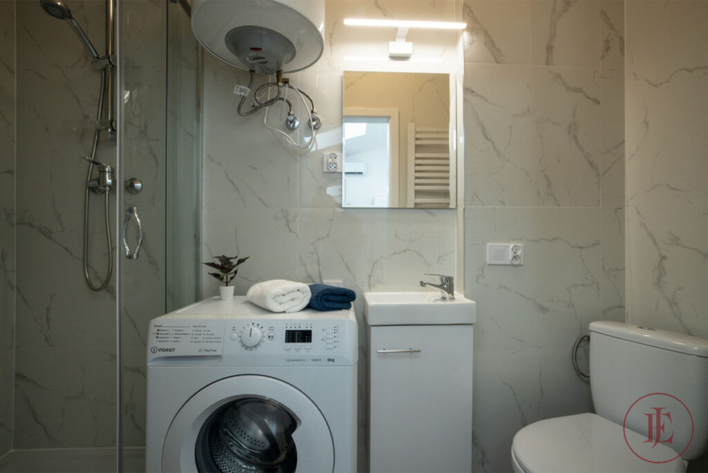 The unit has been professionally divided into two independent studio apartments, each with a separate entrance, private bathroom, and kitchenette. The functional layout allows each unit to be rented independently, significantly increasing investment profitability.