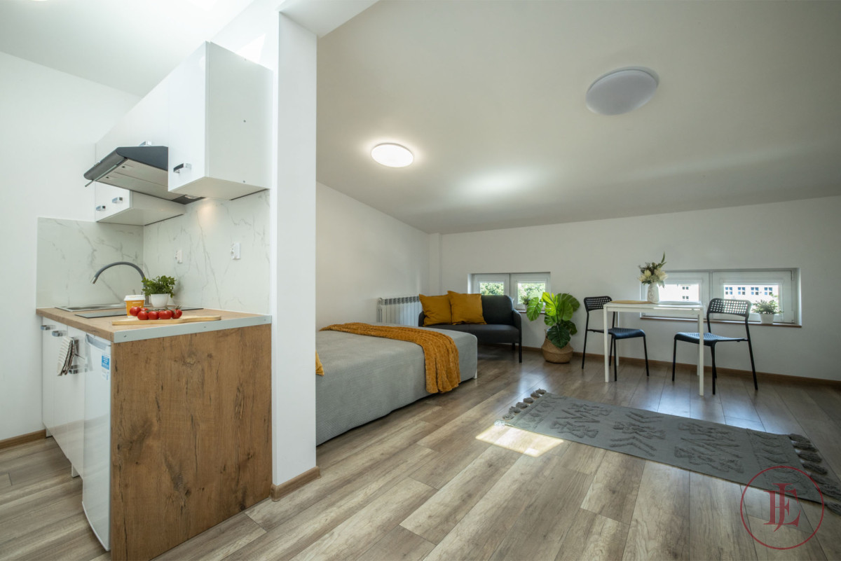 I present an offer to sell a renovated apartment with an area of 27.36 m², located on the 4th floor of a tenement house at Zielona Street in Łódź (Łódź - Polesie - City Center).