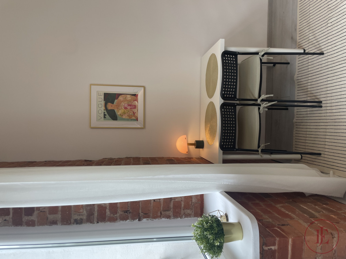 High-quality floor panels and walls finished with smooth plaster and impregnated original brick. New electrical and plumbing installations, along with district heating, ensure comfort and safety. The apartment features a new anti-burglary door and a new PVC window. The large French balcony
