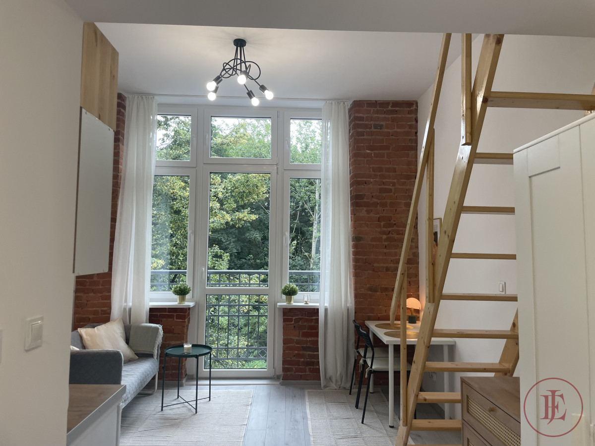 MODERN APARTMENT WITH A MEZZANINE, FRENCH BALCONY AND DISTRICT HEATING NEAR MANUFAKTURA.