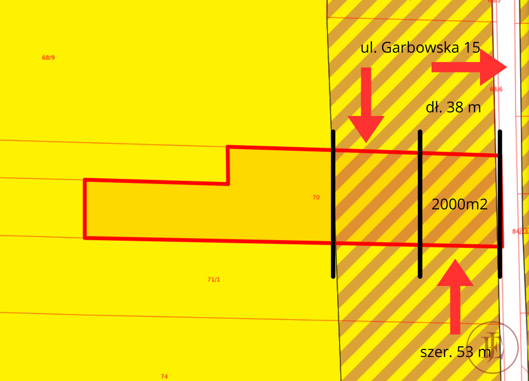 - The plot is located in an area combining peace and quiet with quick access to full urban infrastructure.