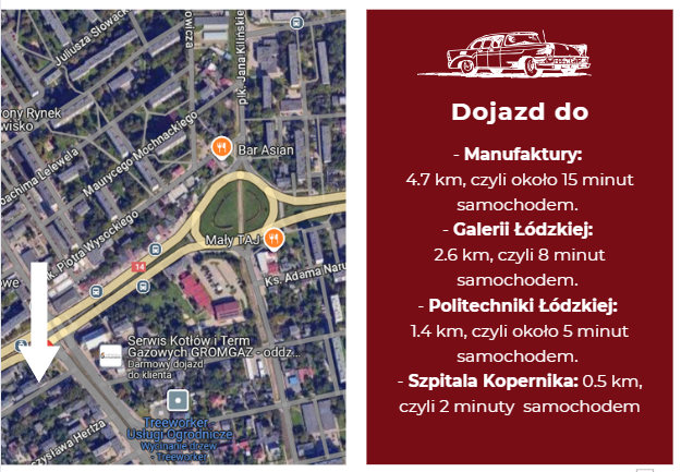 Budynek jest położony w spokojnej okolicy z dogodnym dostępem do infrastruktury miejskiej i komunikacji publicznej.