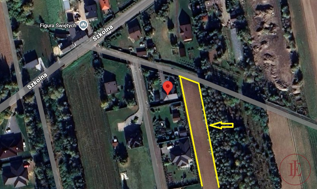- W tej ofercie sprzedawana jest część od strony ul. Szkolnej: ok. 2 000 m² - działka budowlano-inwestycyjna plus ok. 1 680 m² - działka rolna w gratisie