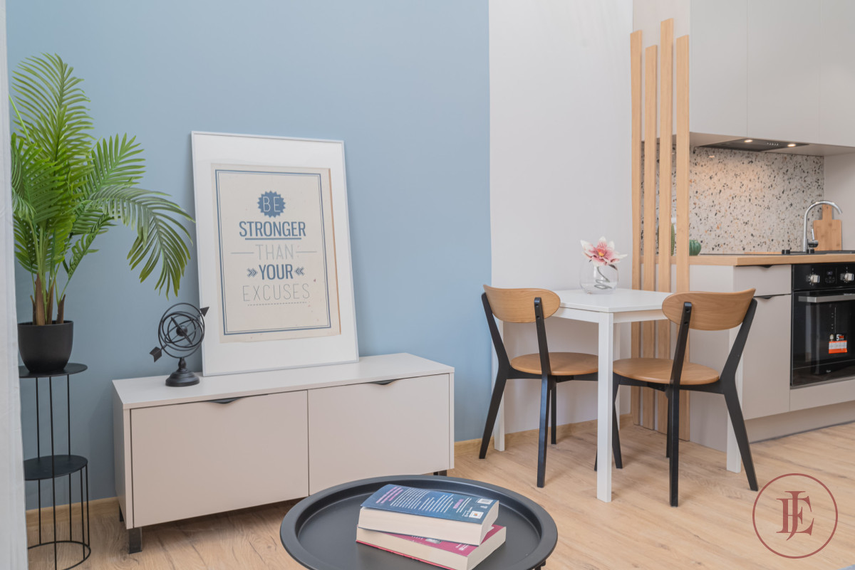 Mieszkanie wykończone w wysokim standardzie, wyposażone w meble.