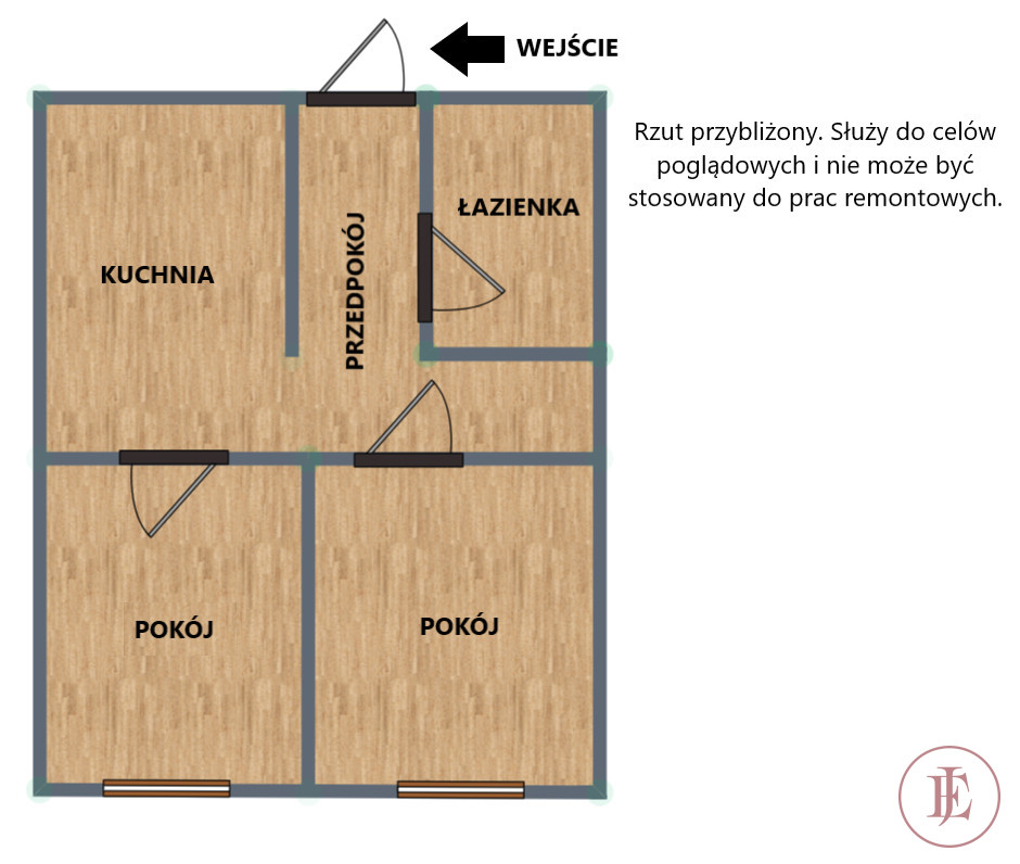 - 2 pokoje, kuchnia, łazienka, przedpokój