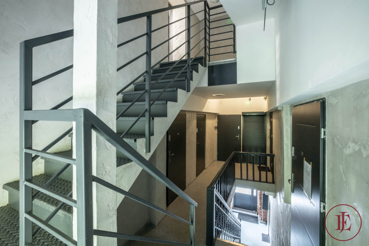 The tenement at 15 Radomska Street is a revitalized, intimate building with a gated, green courtyard that serves as a shared recreational space for residents. The building has undergone thorough modernization including: