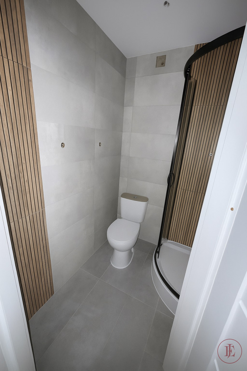 The 30.36 m² apartment, located on the ground floor, will be ready to move in by the end of October 2025. It is bright, cozy, and finished in a modern style. The scope of work includes: