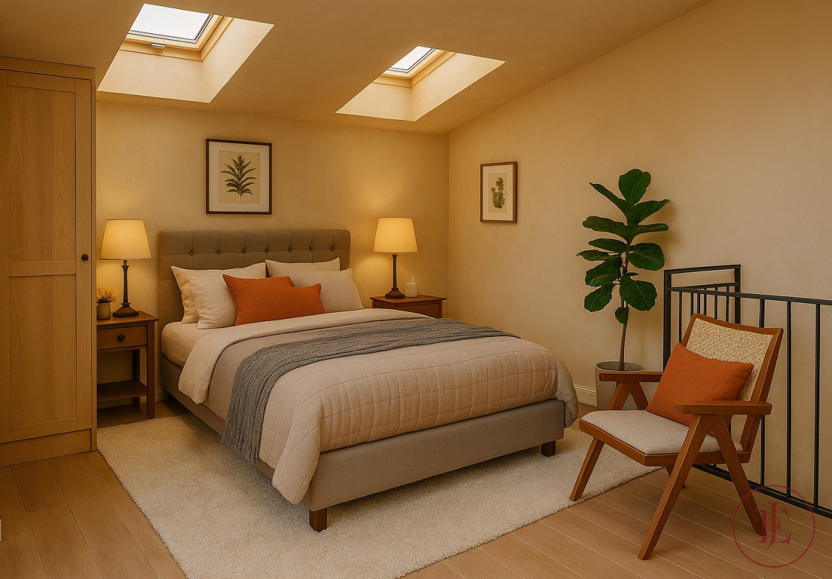 Level II (mezzanine): cozy bedroom with roof windows