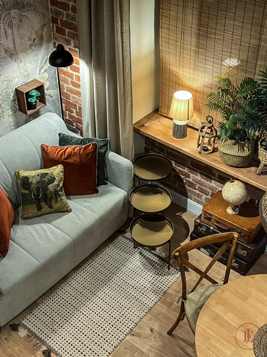 - Naturalne drewno, odkryta cegła, sztukateria, hiszpańska terakota, ciepłe barwy i unikalne detale, drewniane akcenty wprowadzają atmosferę afrykańskiej przygody, a jednocześnie zapewniają domowy komfort.