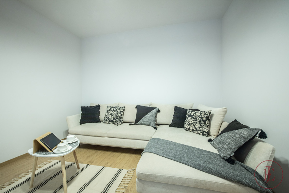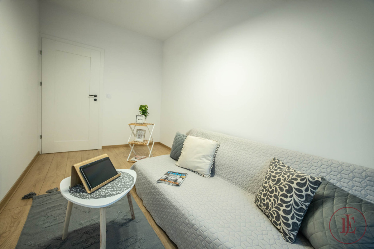 Inside you will find all the essentials for everyday living — a fully equipped kitchenette (fridge, dishwasher, oven, induction hob, extractor hood), a comfortable bedroom, a separate room/office, and a well-sized bathroom with a bathtub and WC.