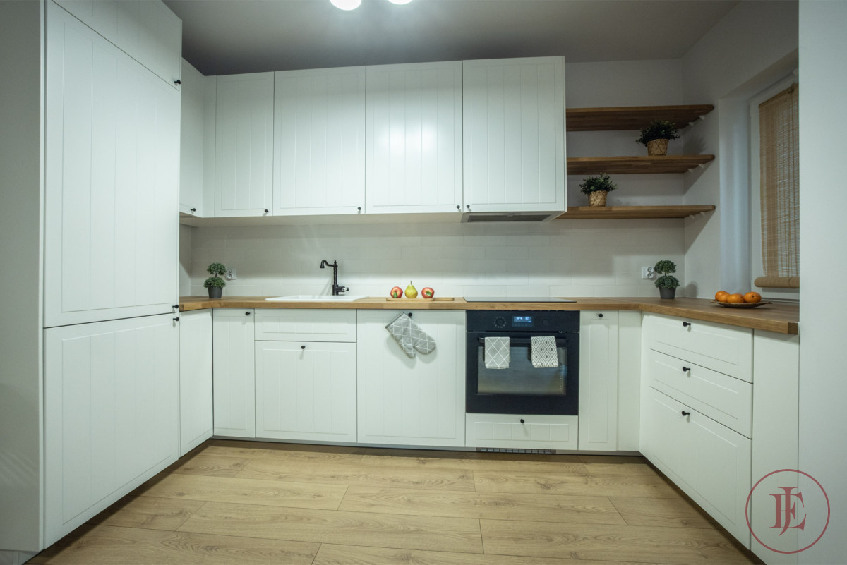 Wewnątrz wyposażenie niezbędne do codziennego życia - w pełni wyposażony aneks kuchenny ( lodówka, zmywarka, piekarnik, płyta indukcyjna, pochłaniacz )