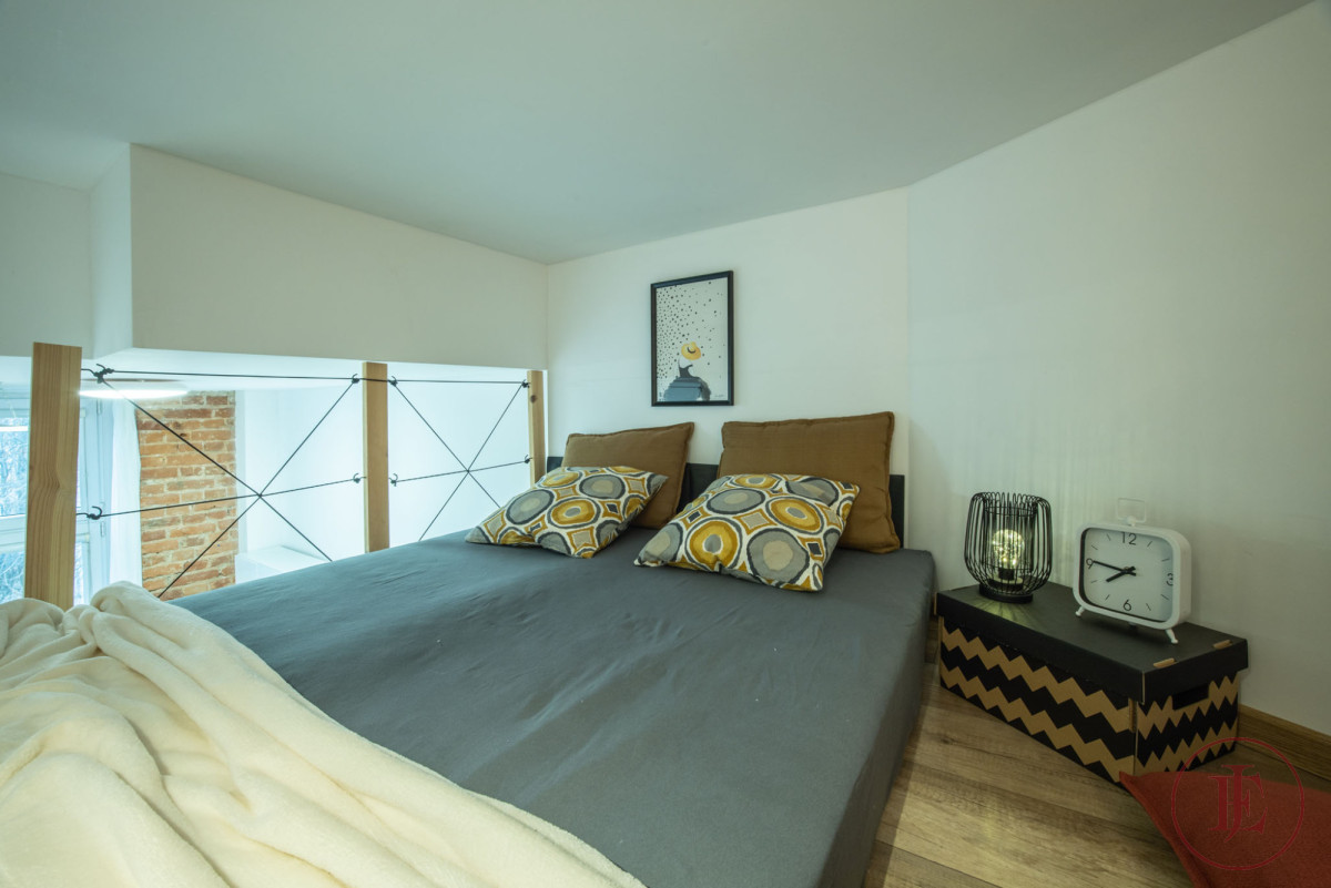 - Antresola: łóżko o wymiarach 140x200 cm oraz dwie komody.